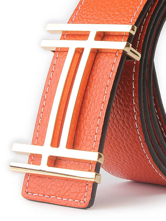 Gold Outline H Buckle -Orange / Black Reversible Belt