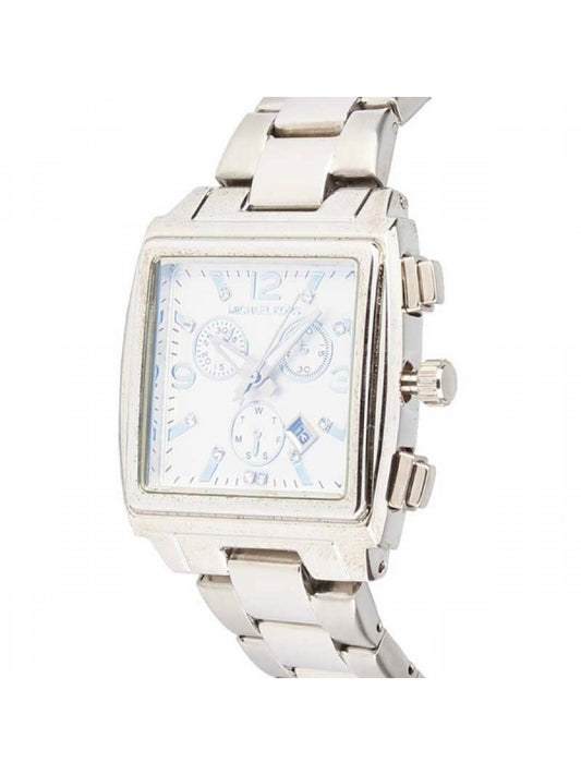 Rectangle White Chronograph Dial - Silver Chain - 021