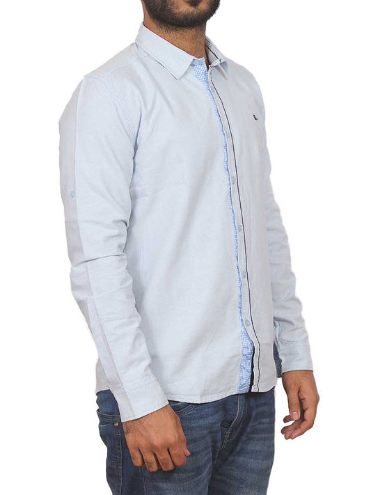 Light Blue Plain Self Design Casual Shirt